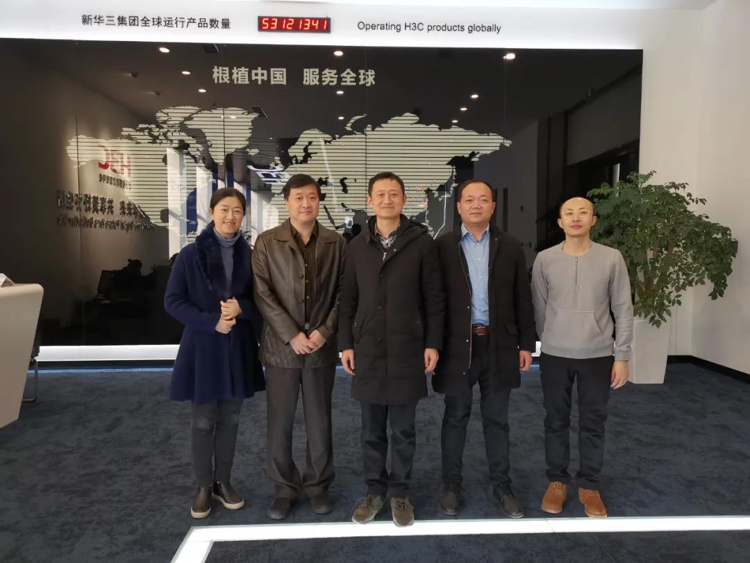 2020年12月28日,山東科大中天董事長湯建泉、總經理歐元慶、副總葉蔚、總工程師張明明一行來到新華三集團杭州總部參觀考察。新華三集團浙江代表處--教育系統部部長呂明進行了接待。